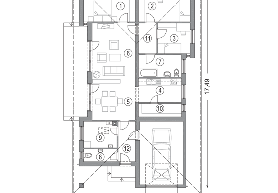 Parter123,99 m2+garaj21,68 m2+terasa16,32 m2Parter:1. camera12,06 m22. camera12,11 m2 ...