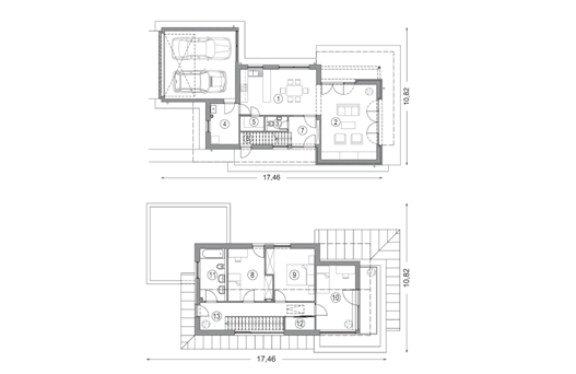 Parter59,09 m2Mansardă61,30 m2Total120,39 m2+ garaj17,42 m2+ terasă18,43 m2 ...